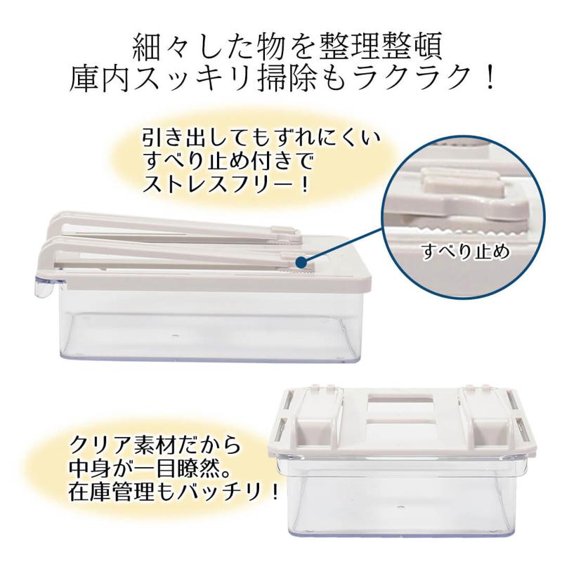 冷蔵庫 棚下 収納 引き出し ケース ワームグレー S キッチン 調味料 小分け スペース 有効活用 隙間 整理 在庫 管理 滑り止め付き クリア素材 見やすい しゃれ パール金属