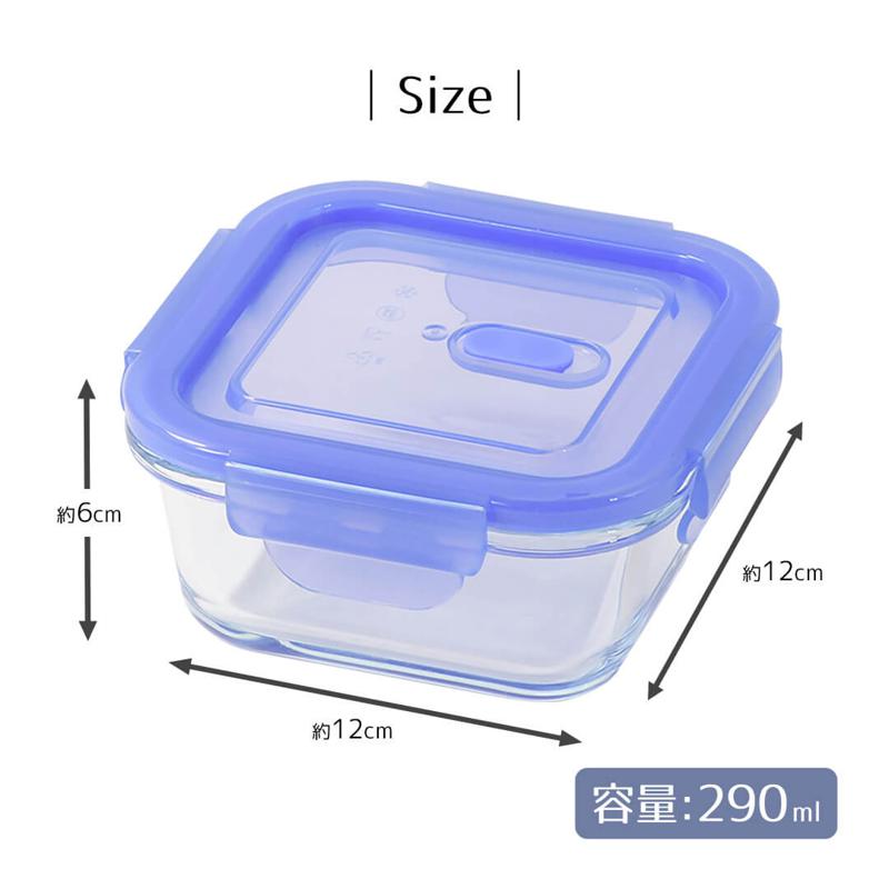 パール金属 保存容器 耐熱ガラス ガラス製 バルブ付き 蒸気弁 正方形 ブルー 290ml 冷凍保存 食洗機 食洗機対応 電子レンジ オーブン 4点ロック 冷凍 ガラス 四角