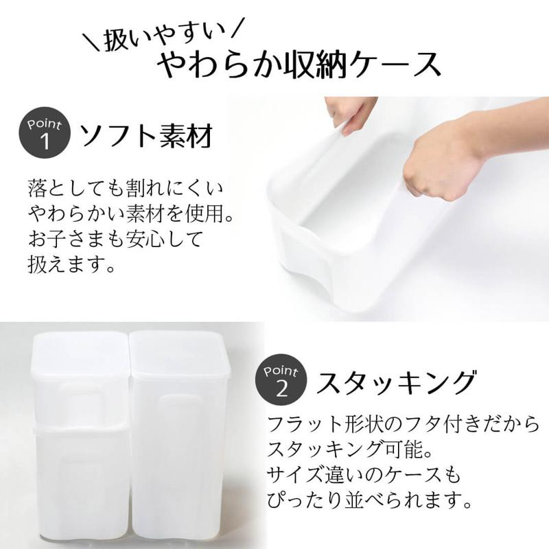 パール金属 収納ボックス 収納ケース やわらか ソフト素材 ソフト ホワイト L 角型 スクエア 蓋付き シンプル 持ち手 収納 ボックス ケース 取り出しやすい スタッキング可能