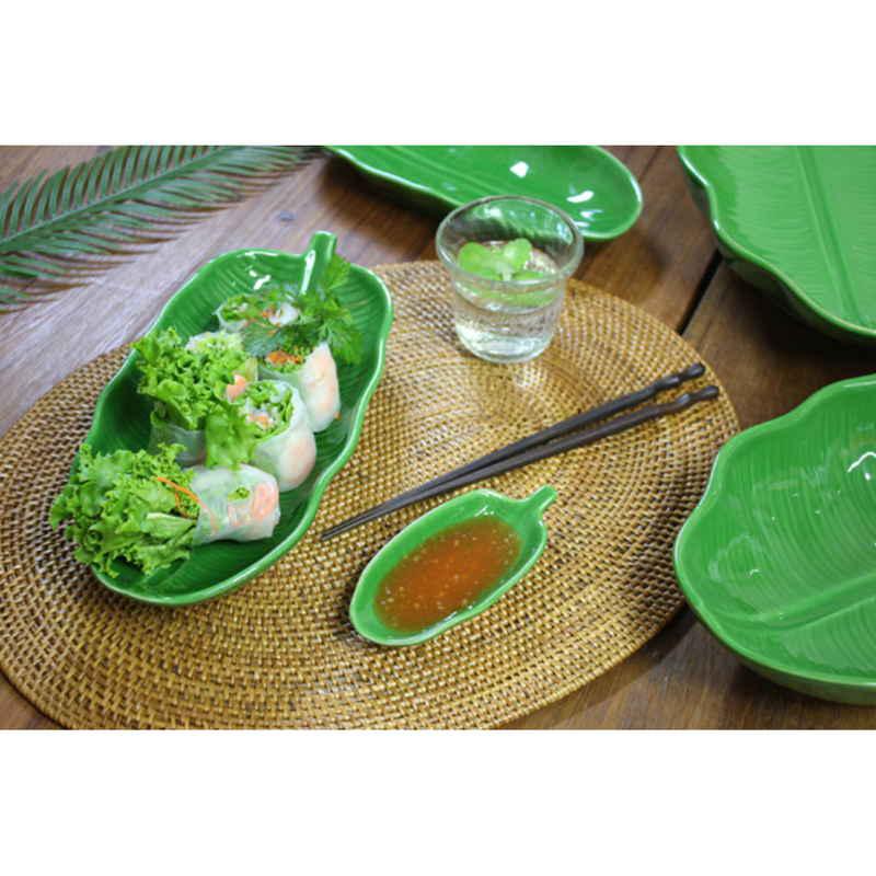 バナナの葉をかたどった陶器のお皿です。
