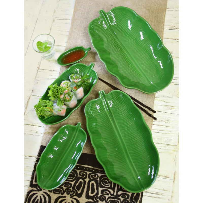トモ・コーポレーション トレー 36cm バナナリーフ ストーンウェア グリーン