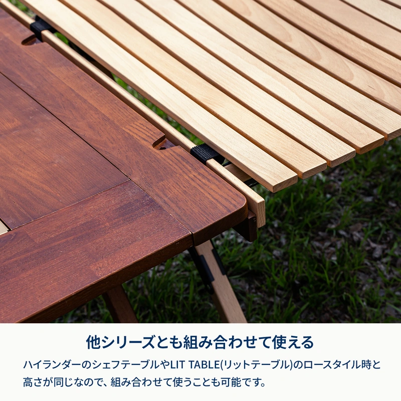 [即納在庫品] ハイランダー ウッドロールトップテーブルEX120 ナチュラル HCJ-004