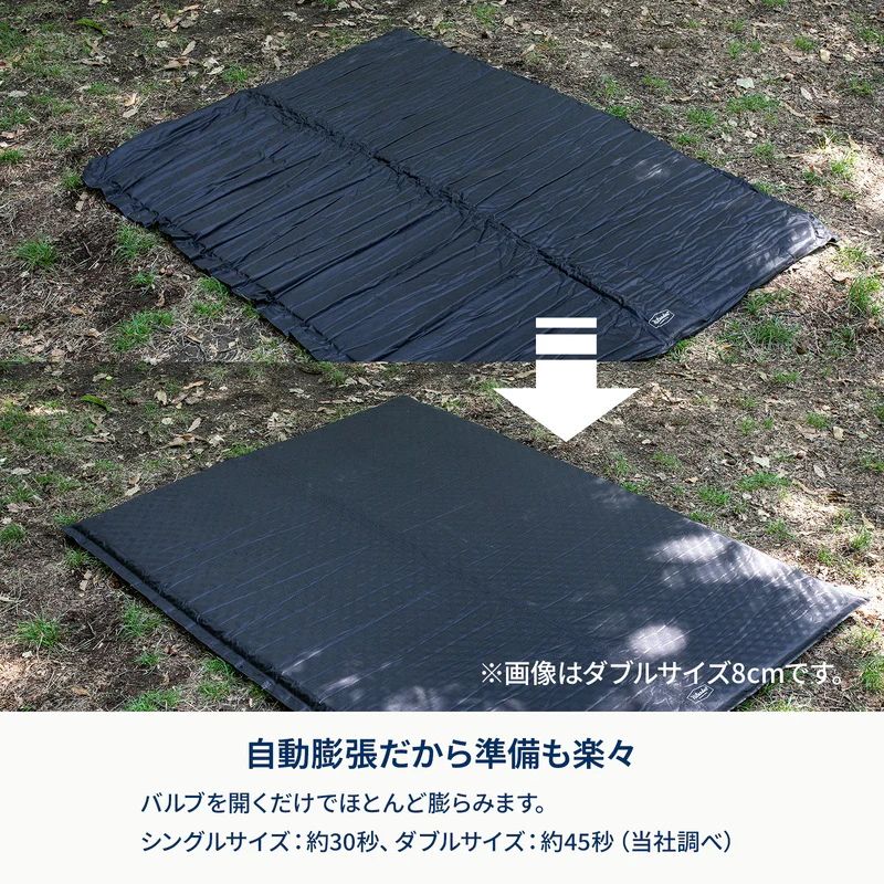 自動膨張で準備楽々。シングルサイズは約30秒、ダブルサイズは約45秒でほとんど膨らみます