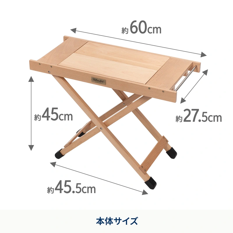 ○素材:ブナ(本体、天板)、ステンレス(サイドバー)、フック(スチール)、600Dポリエステルオックスフォード(収納袋)