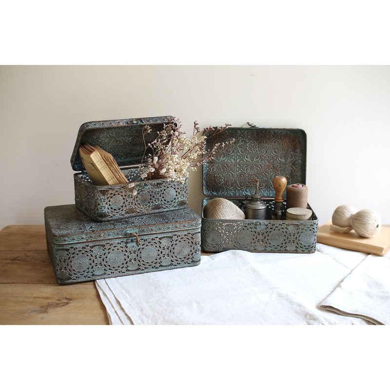 アンティークな雰囲気漂うブリキ製ボックス Sサイズです。