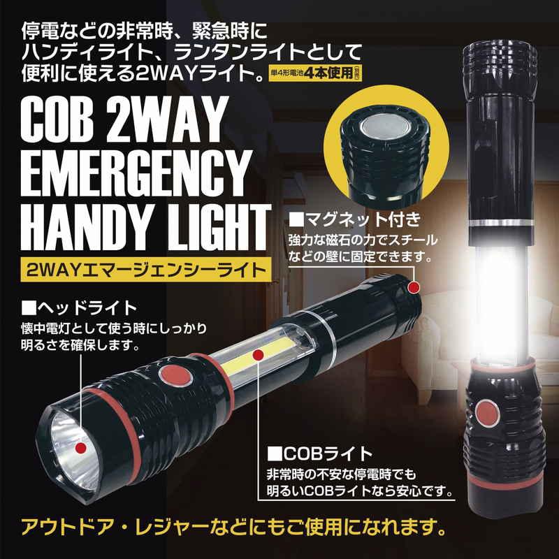 停電などの非常時、緊急時にハンディライト、ランタンライトとして便利に使える2WAYライトです。