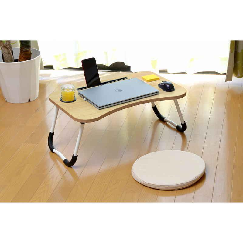 トレードワン 折りたたみテーブル 幅60cm ドリンクホルダー付 PC作業 ブラウン