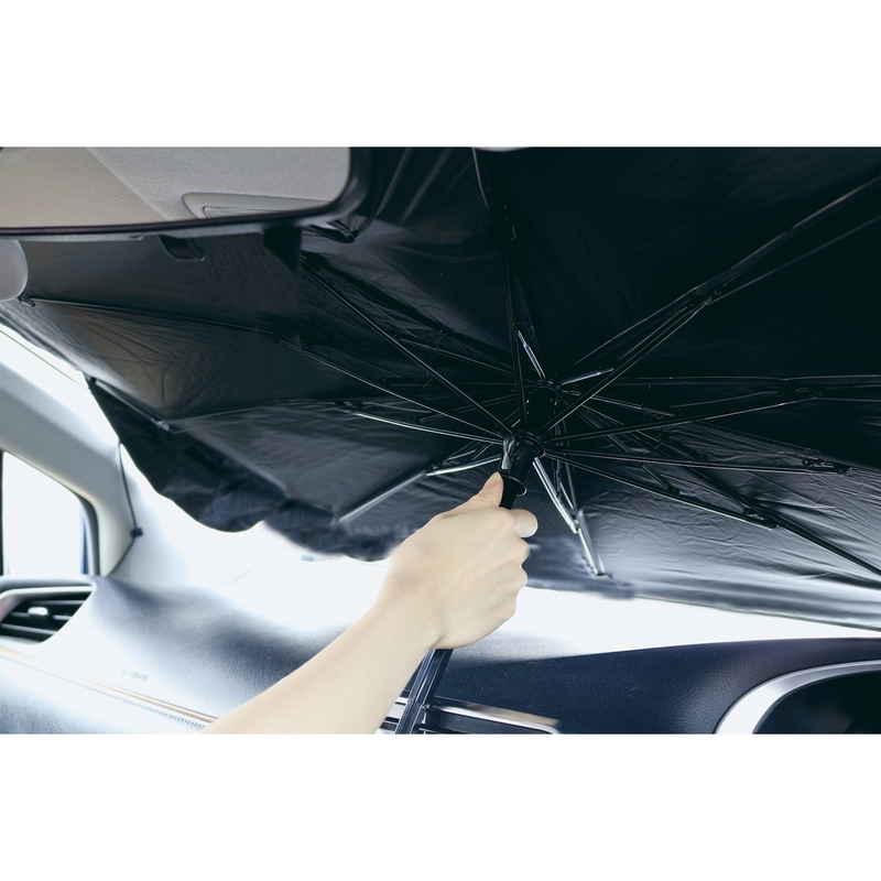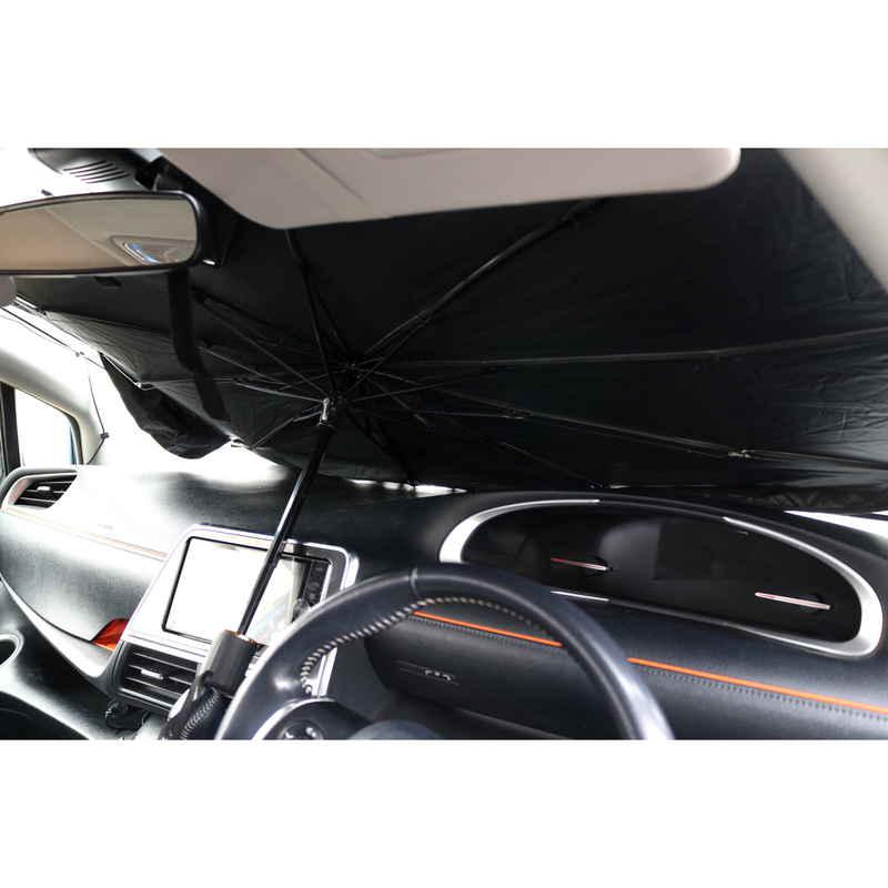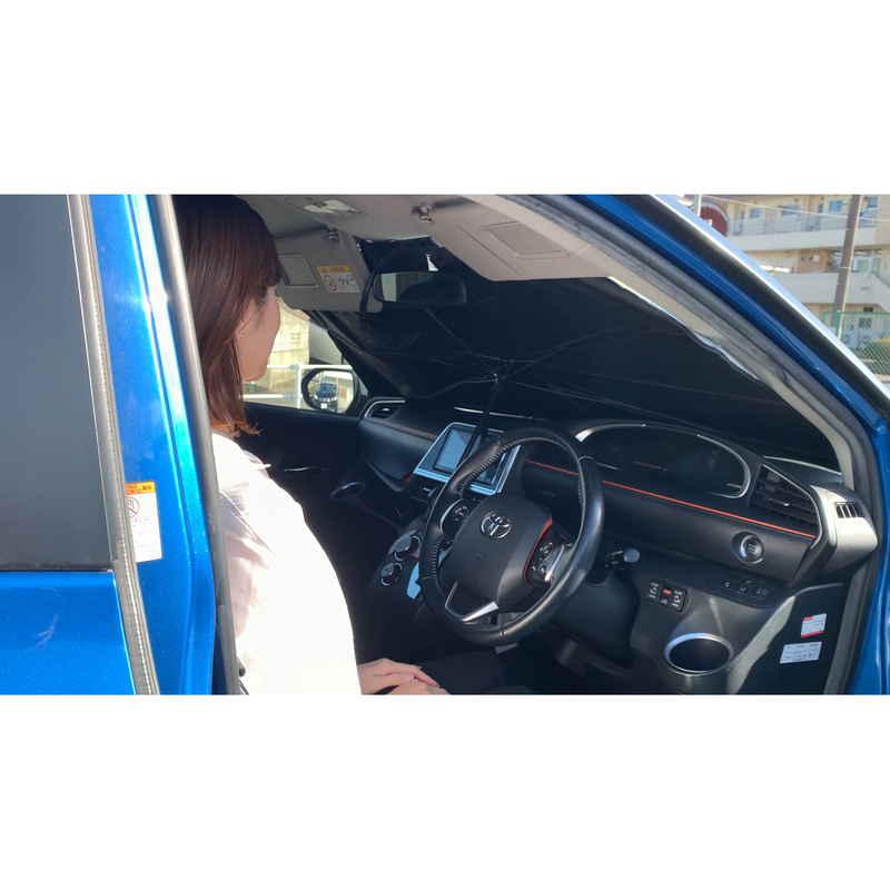 傘のように開くだけで簡単にフロントガラスに設置できます。
