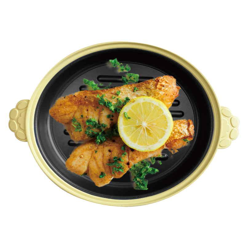 マイクロ波を熱変換する特殊素材で、フライパンで焼いたようなきれいな焼き目がつけられます。