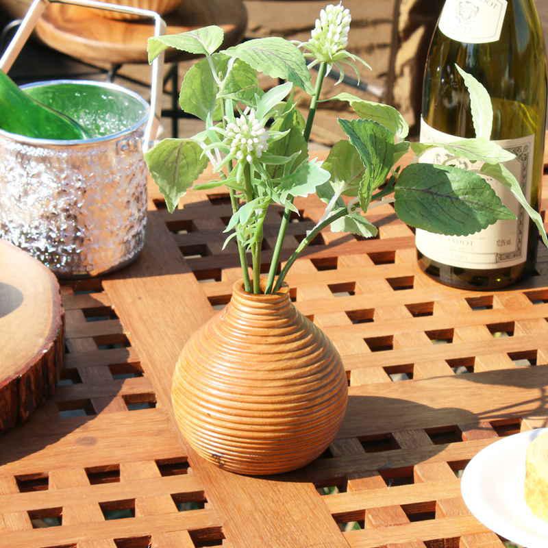 マンゴーウッドをくり貫いたインテリアに調和するフラワーベースです。