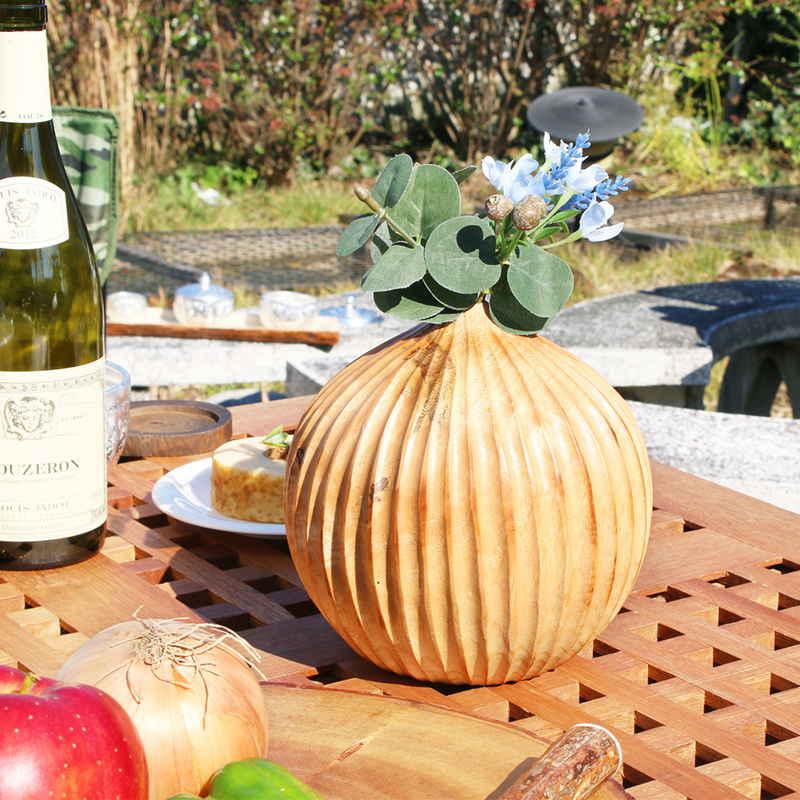 マンゴーウッドをくり貫いたインテリアに調和するフラワーベースです。