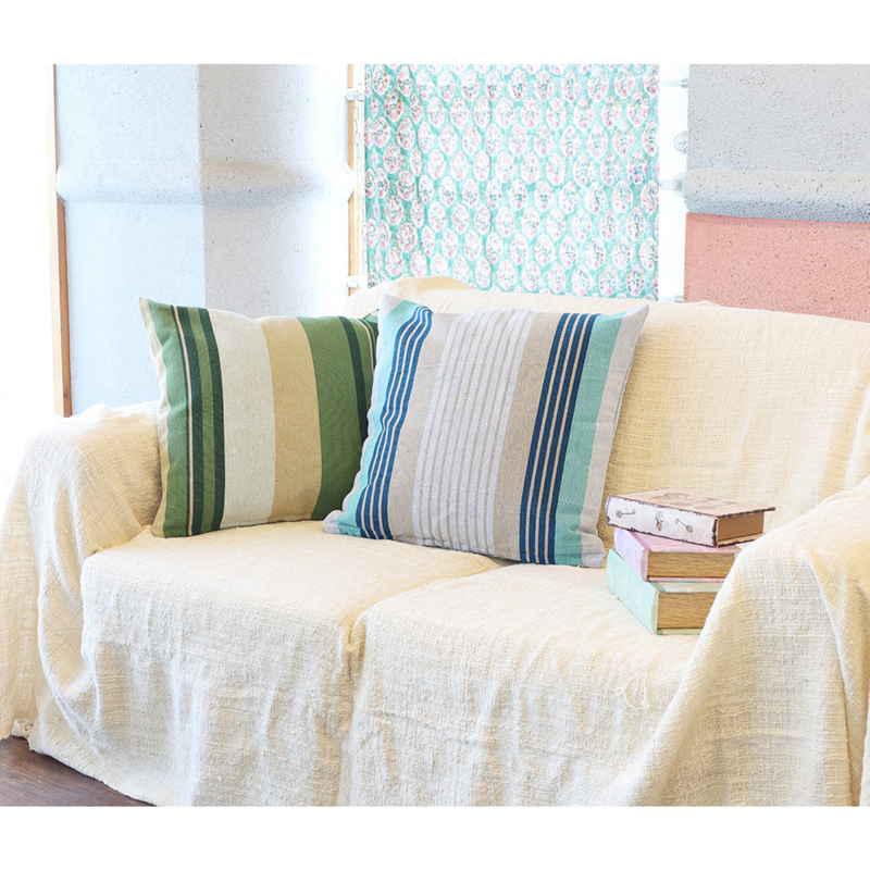 お部屋のアクセントになる縞模様のクッションカバーです。