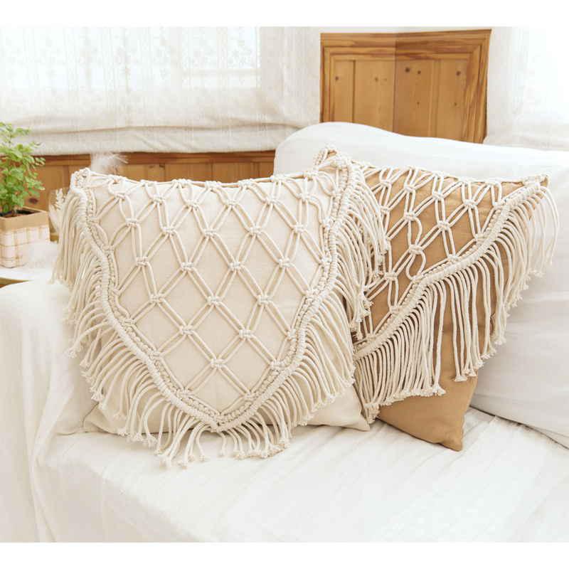 トモ・コーポレーション クッションカバー マクラメ ストリーム 45×45cm ナチュラル