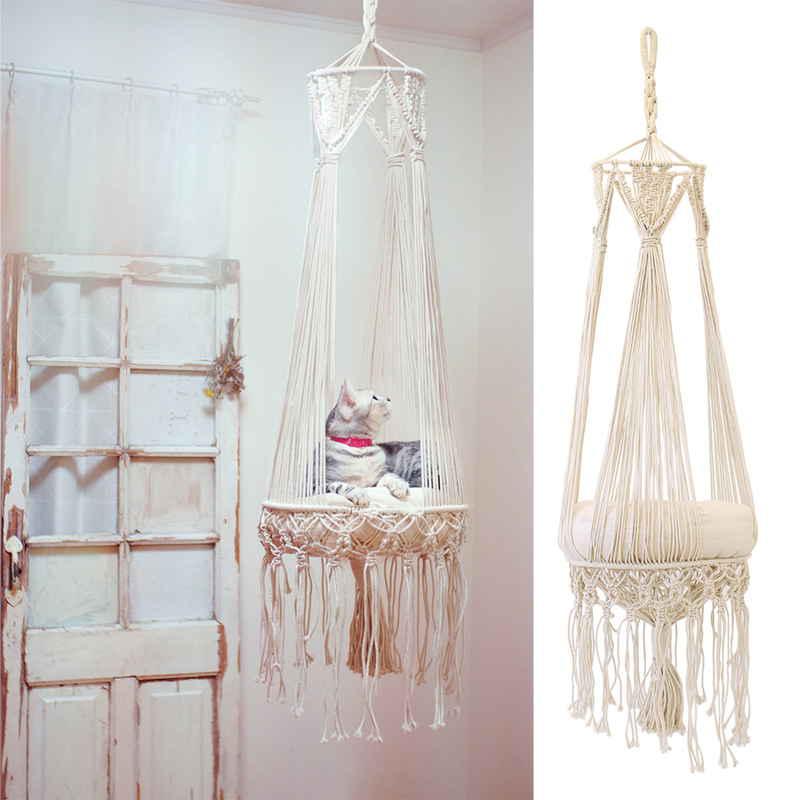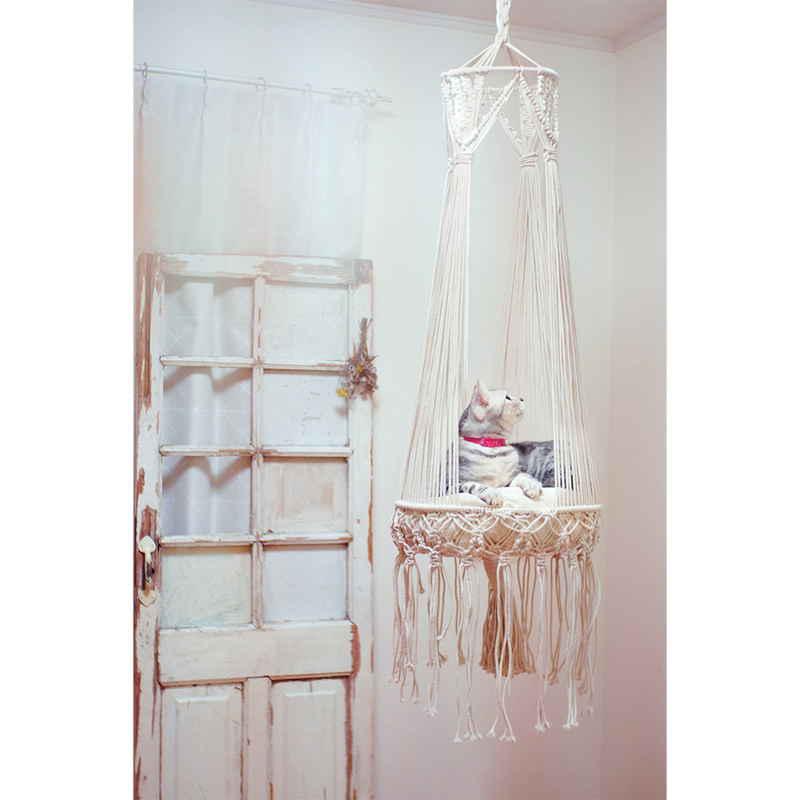マクラメ編みで作られた美しいキャットハンギングベッドです。