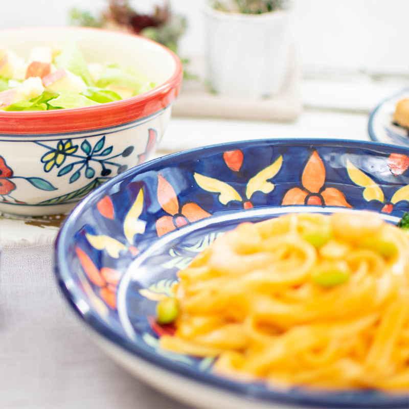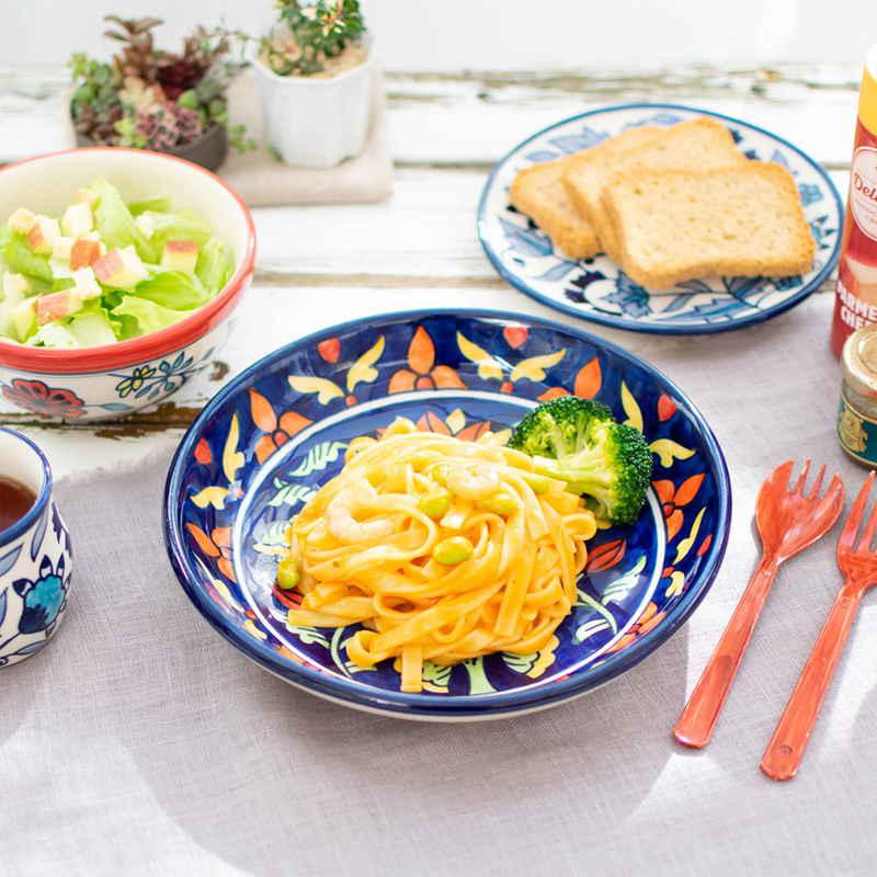 備考:食器洗い乾燥機/使用可能 電子レンジ/使用可能 オーブン/使用不可 ※インドの職人がハンドペイントでひとつひとつ丁寧に描き、お作りしたものです。そのため、柄に個体差や、色の濃淡の差がございますが、こちらはハンドメイドの特徴としてご了承ください。 ※電子レンジでご使用の際は外側の水気をなるべく拭き取ってからご使用下さい。 ※お客様のお使いのモニター設定、お部屋の照明等により色味が実際と異なる場合があります。