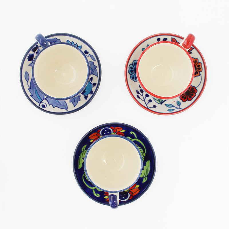 インドの職人がハンドペイントでひとつひとつ丁寧に描いた、エスニックの世界観が楽しめるカップとソーサーのセットです。