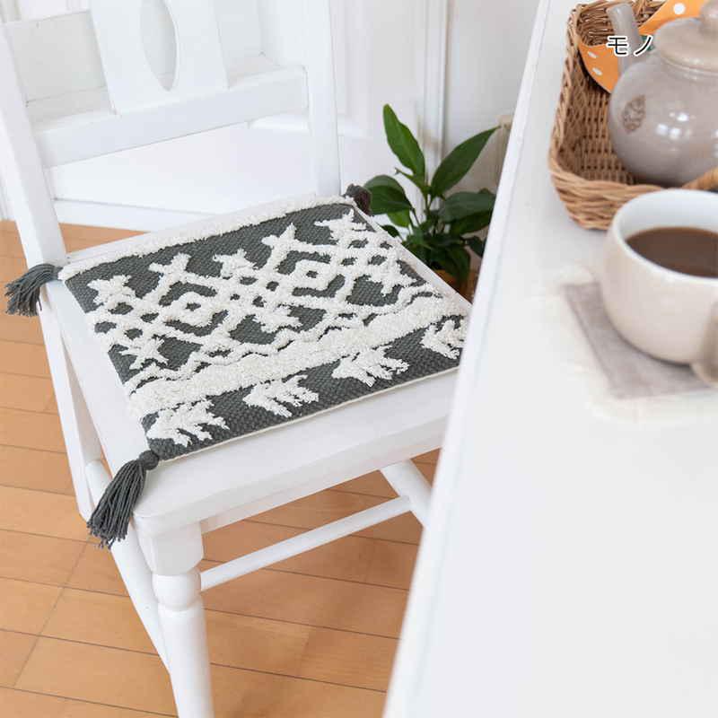 トモ・コーポレーション チェアパッド 33×33cm ボーホータッチ モノトーン ハンドメイド モノ