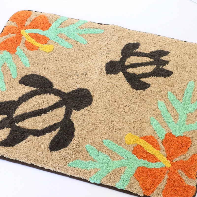 ハワイアンの定番ホヌとハイビスカスがデザインされたマットです。