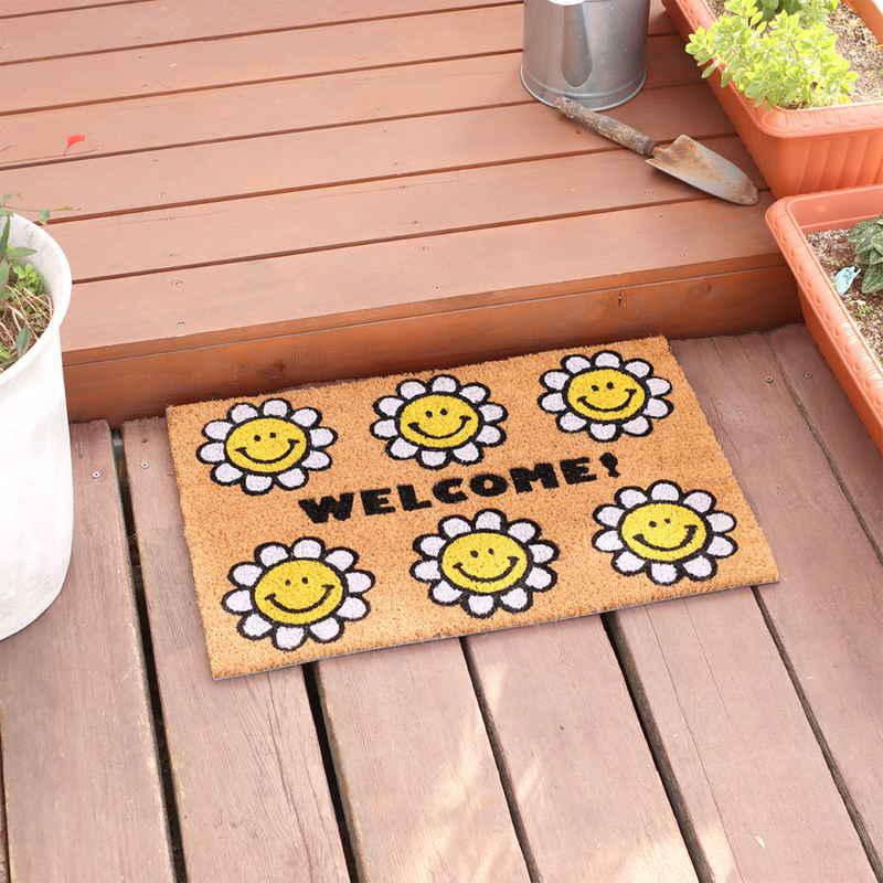 トモ・コーポレーション 玄関マット コイヤーマット 40×60 屋外 泥落とし フラワースマイル