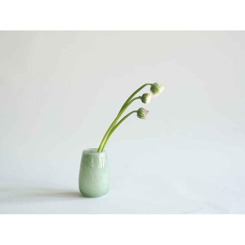 ホワイエ 花瓶 DGティアドロップベース ガラス 直径7×高さ10cm ライトグリーン
