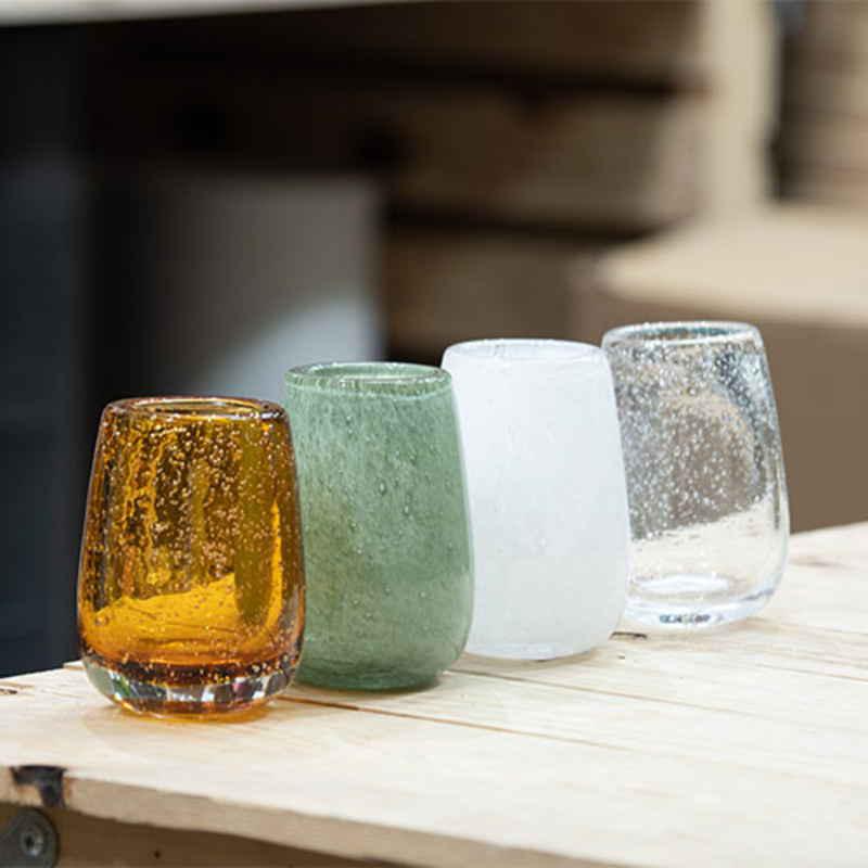 一点一点異なる、手仕上げで作られた「DGシリーズ」 インテリアとして存在感のある佇まい 多彩なカラーバリエーション 職人による吹きガラスの技 気泡デザインのガラス