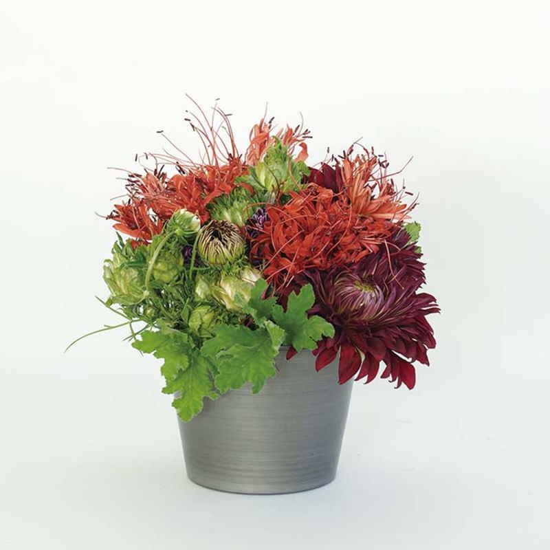 どことなく工業的で、グリーンやお花が映える味わい深い素材が特徴です。