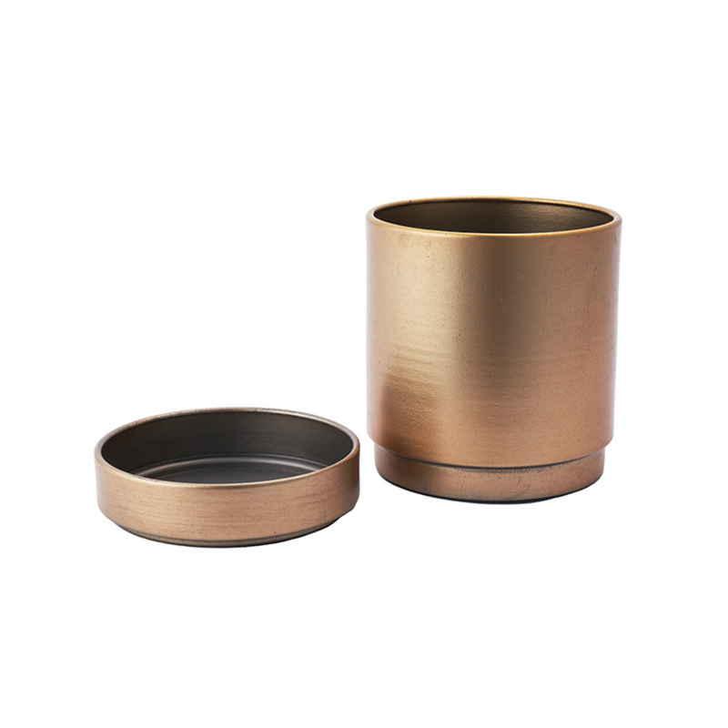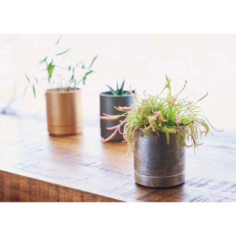 ホワイエ 植木鉢 MC円柱メタルECOポット 受け皿付き 直径10cm アンティークゴールド