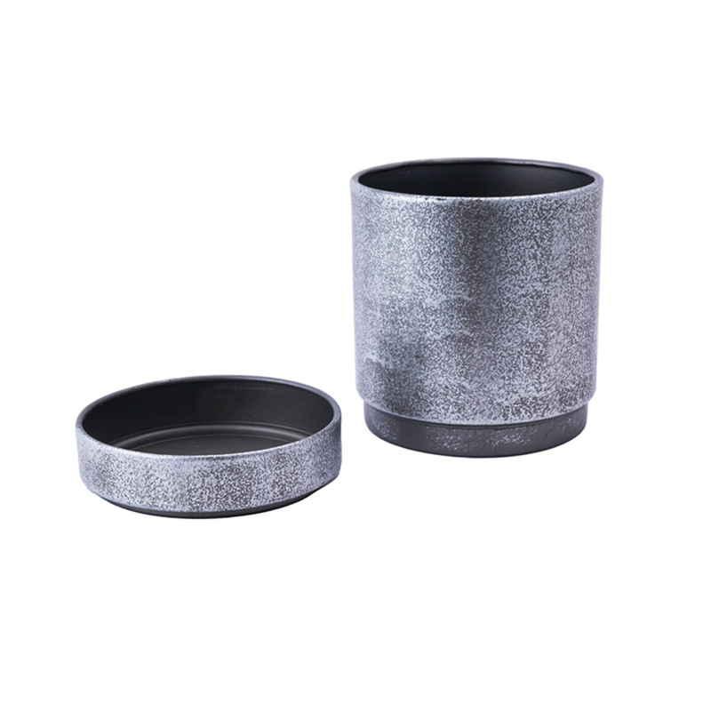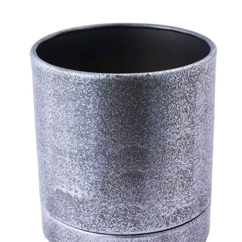 ホワイエ 植木鉢 MC円柱メタルECOポット 受け皿付き 直径10cm シルバーブラック