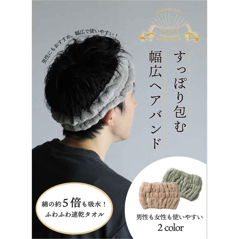 水に触れた瞬間、サッと吸水してくれるヘアバンドです。
