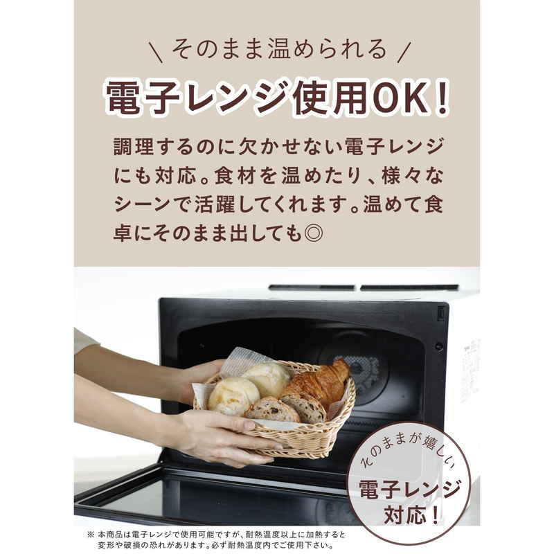 電子レンジ使用OKなので、パンなどを温めてそのまま食卓に出すことができます。
