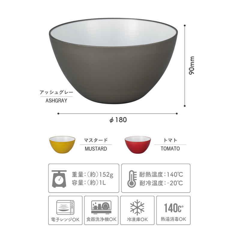 シービージャパン 耐熱レンジボウル 18cm atomico 電子レンジ対応 食洗機対応 アッシュグレー