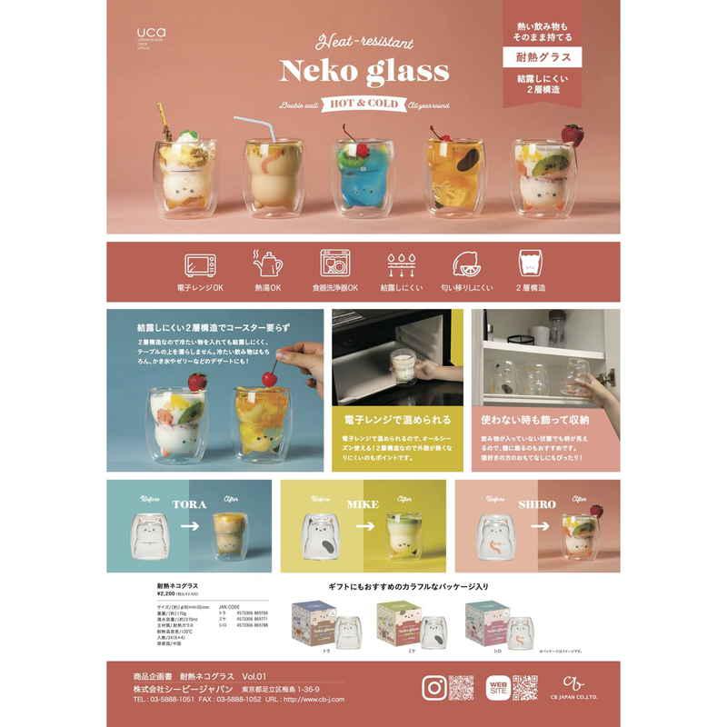 ドリンクを注ぐとネコが姿を現すダブルウォールグラスです。