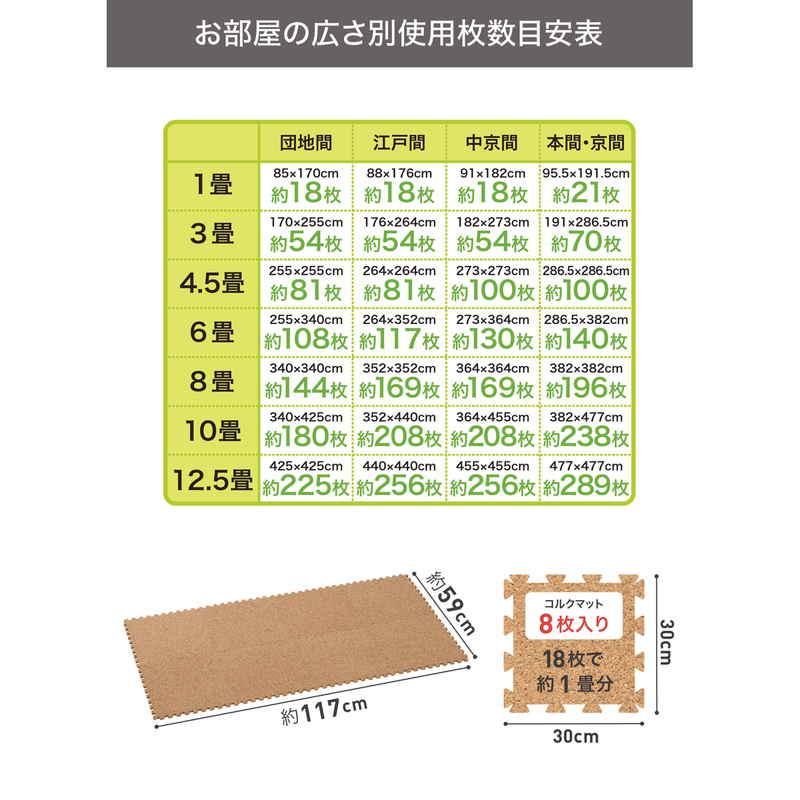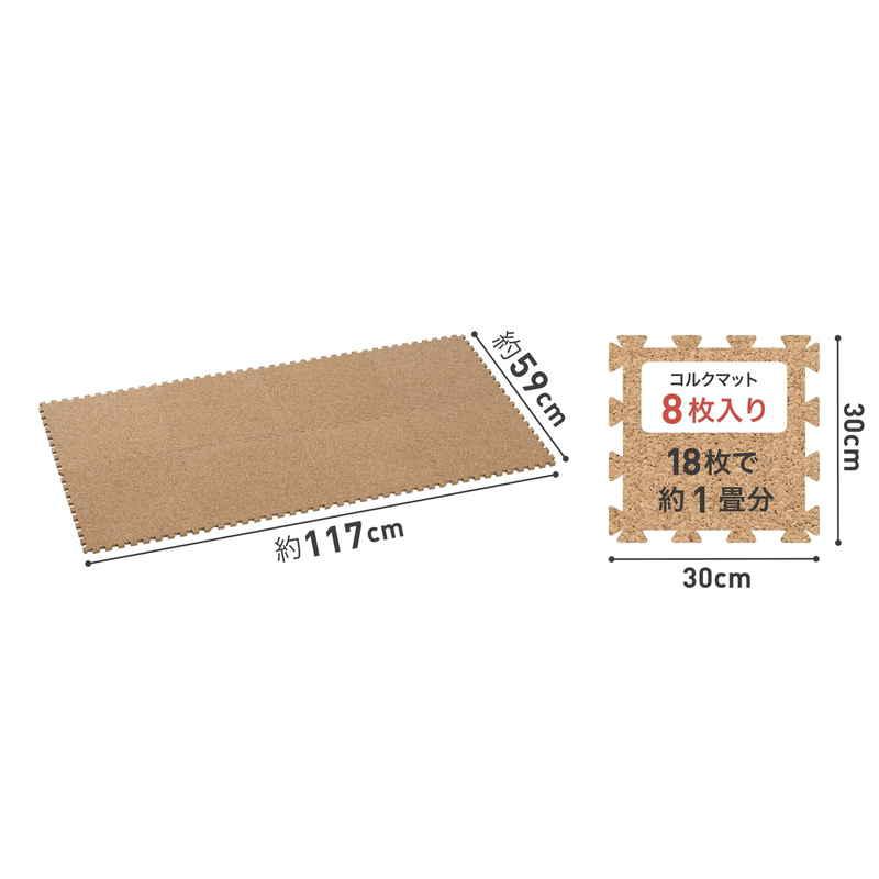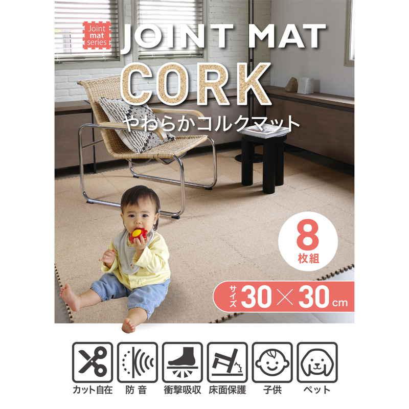 シービージャパン ジョイントマット やわらかコルクマット 8枚組 厚さ8mm 天然コルク 洗える
