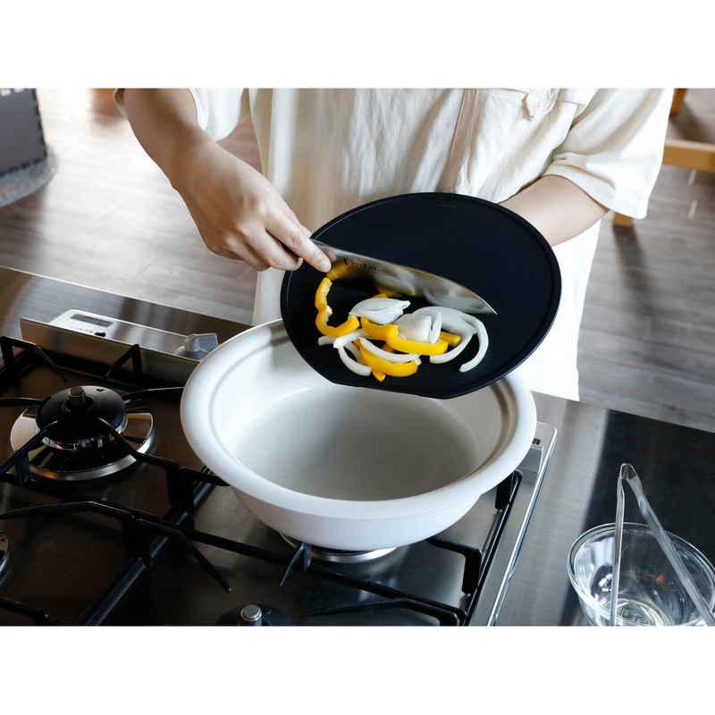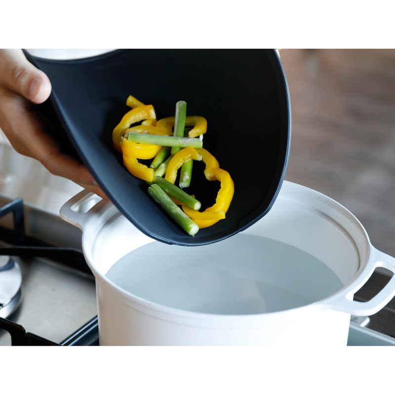 折り曲げられるので、鍋やフライパンに食材を入れやすくなっています。