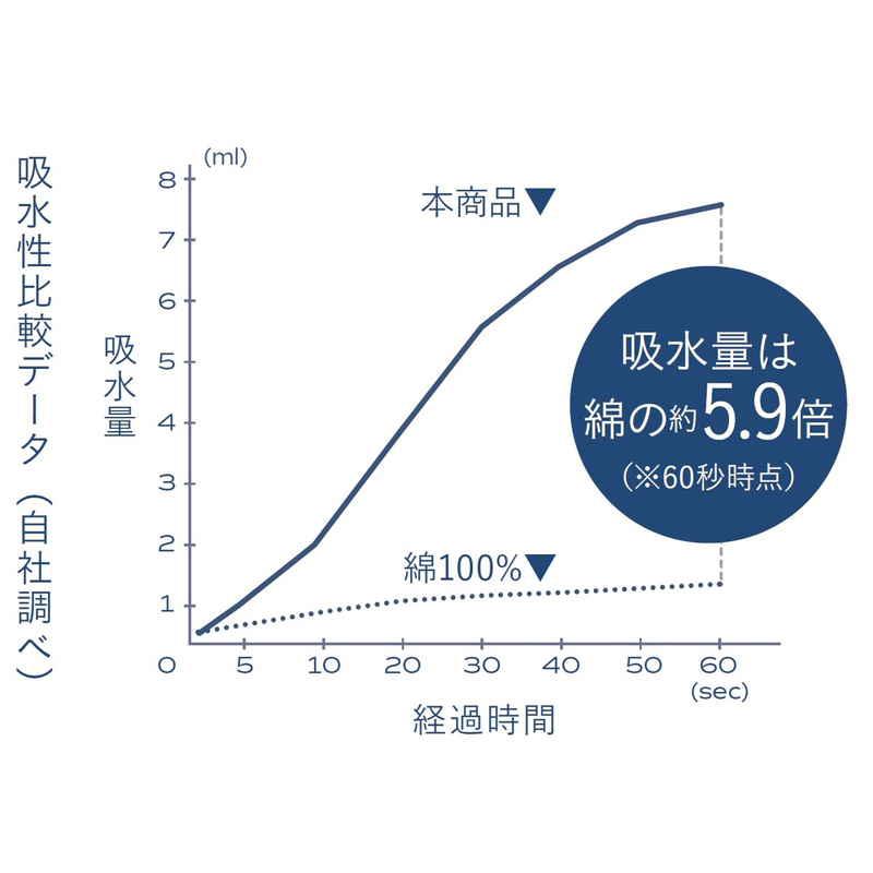 吸水量は綿タオルの約5.9倍で、水滴をサッと吸水します。