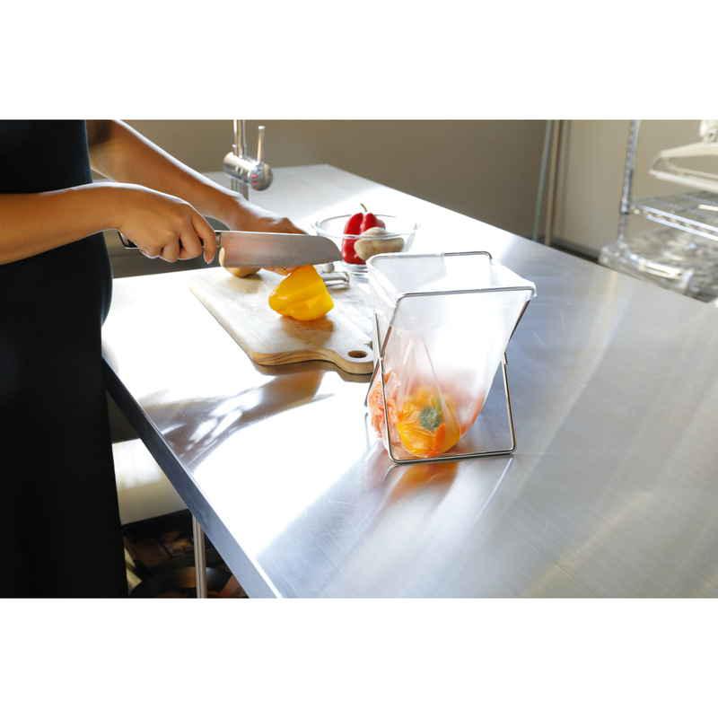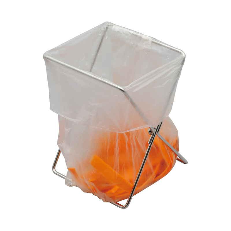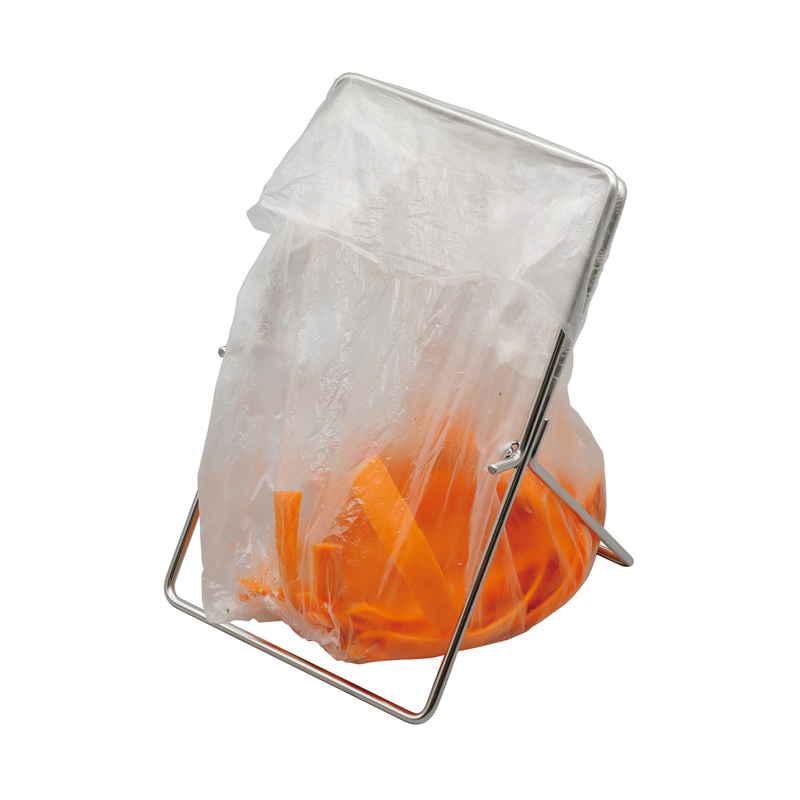 開閉できるステンレス製ポリ袋スタンドです。