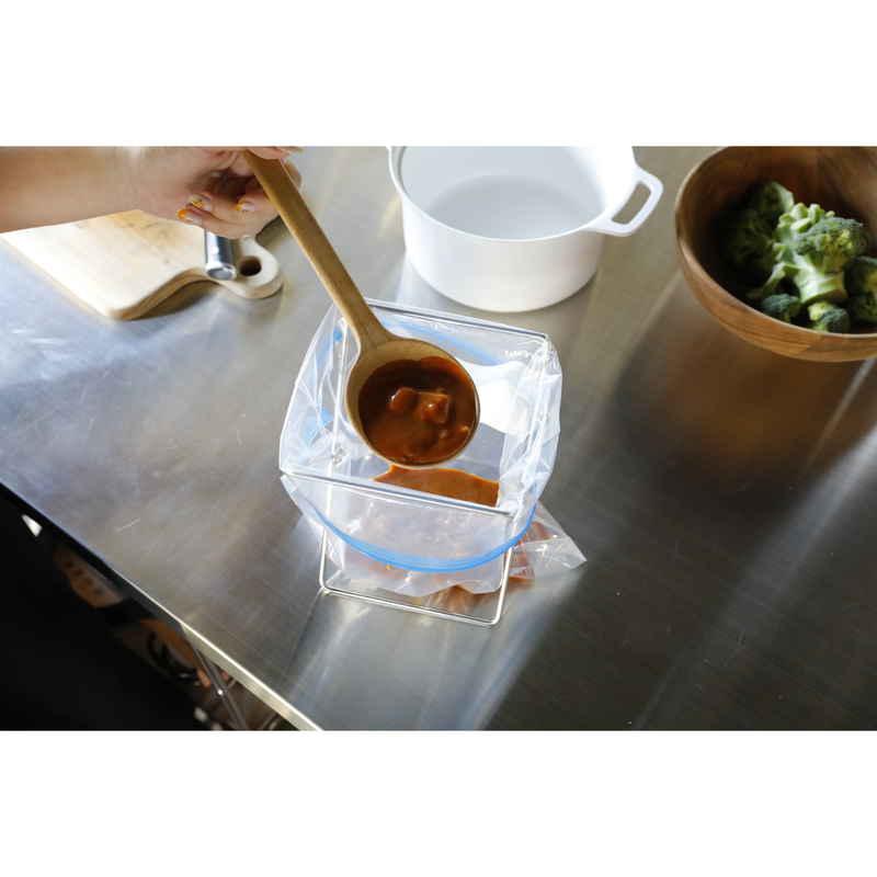 保存袋を掛けて食材の移し替えもスムーズにできます。