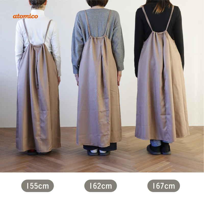 足首まですっぽり覆って部屋着が見えないワンピースみたいなエプロンです。