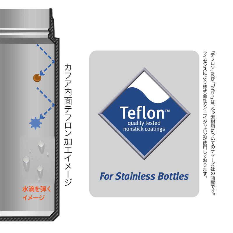 内面にテフロン加工を施すことで、コーヒーの匂いや汚れを付着することを防ぎます。