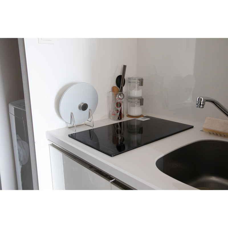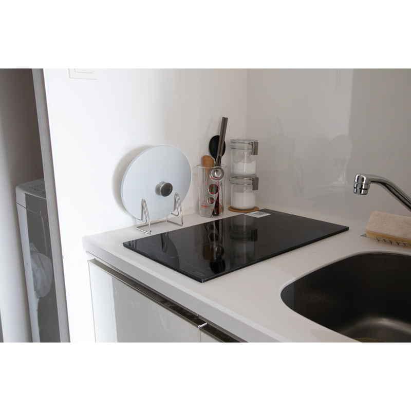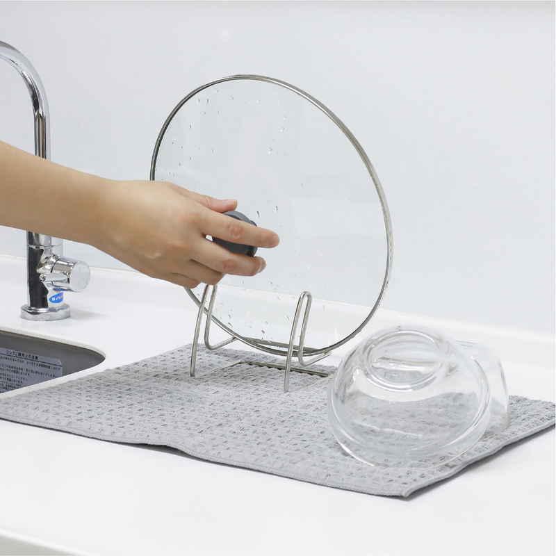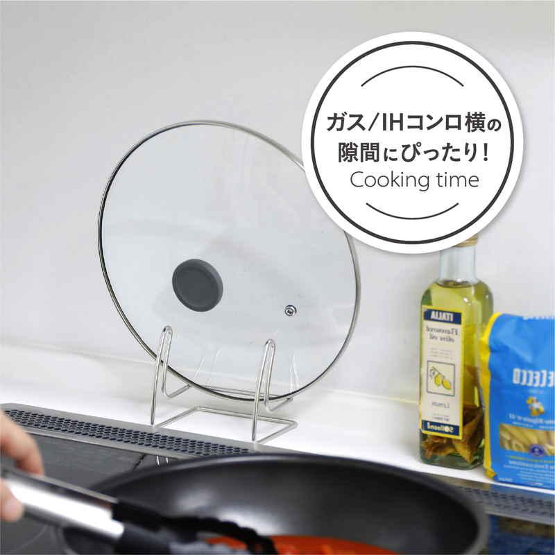 鍋や、フライパンのフタを立てておける便利なスタンドです。