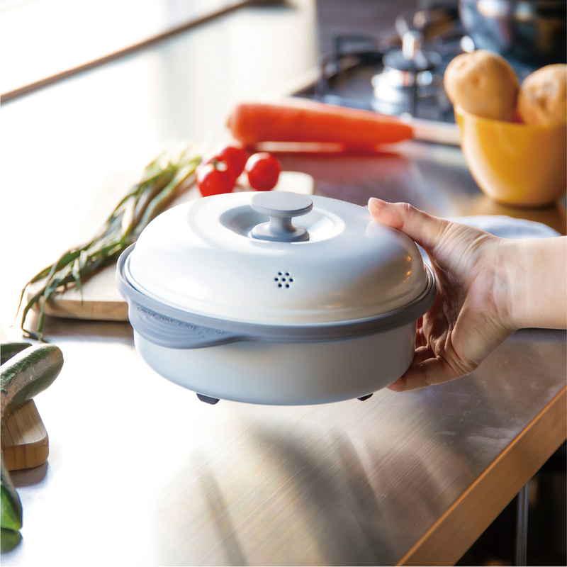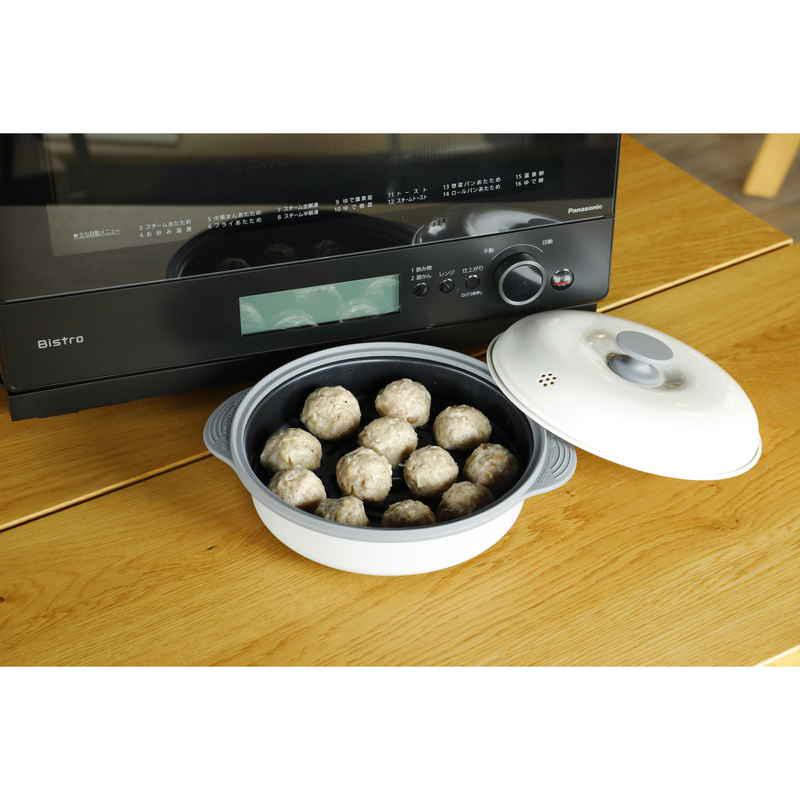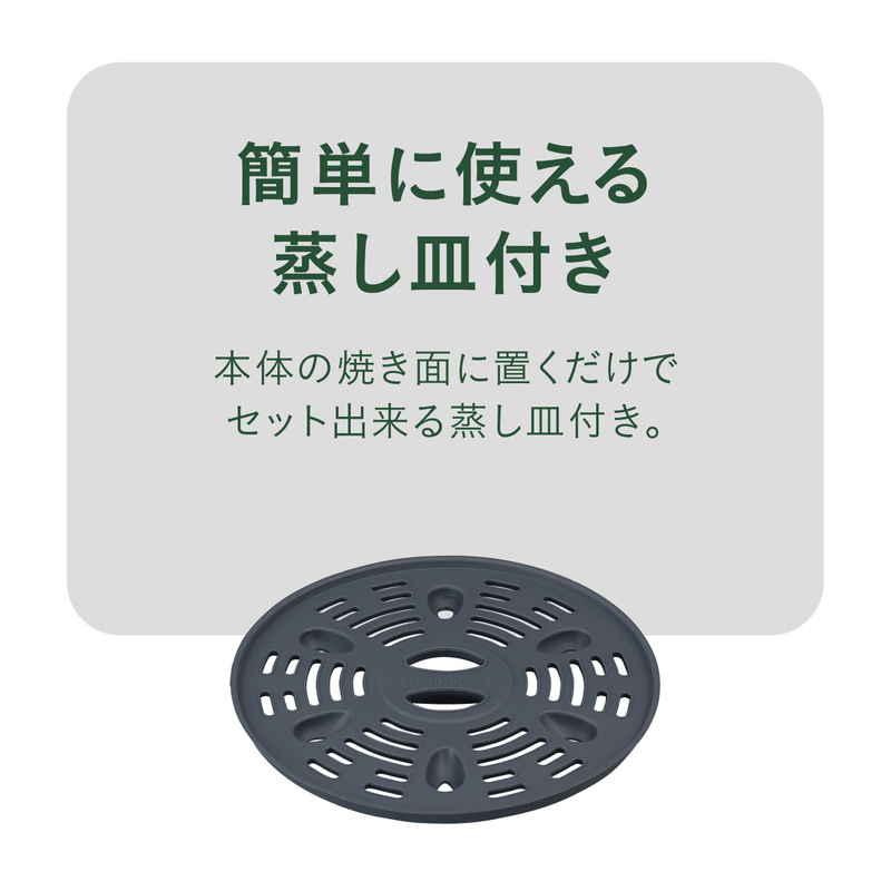 蒸し皿付きで、ヘルシーな蒸し料理ができます。