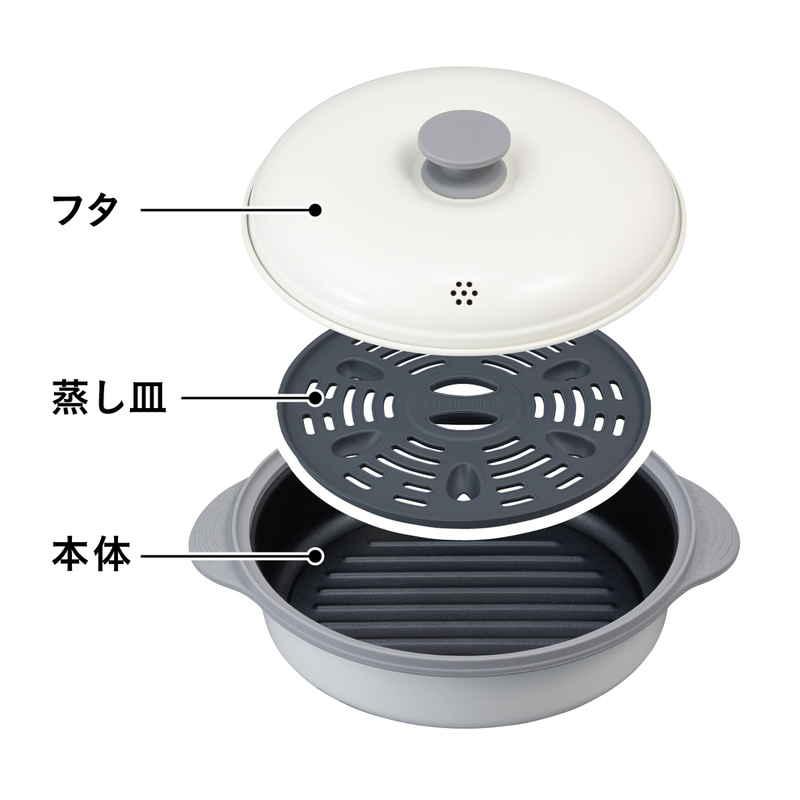 材質:本体/アルミメッキ鋼板、シリコーンゴム 蒸し皿/シリコーンゴム