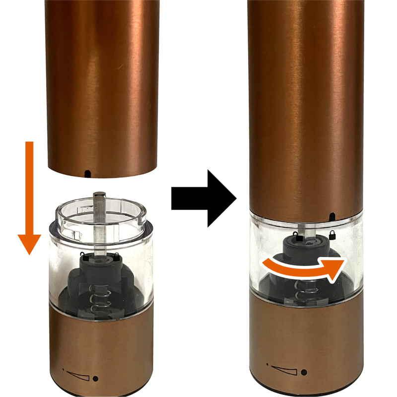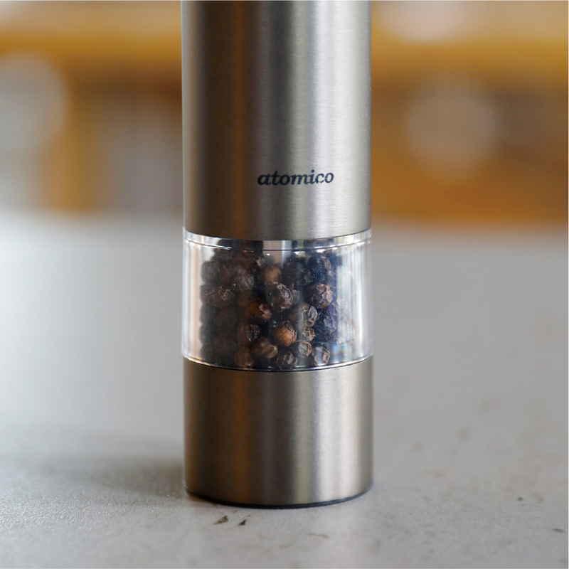 自動でスパイスが挽ける、ステンレス製の電動ソルト&ペッパーミルです。