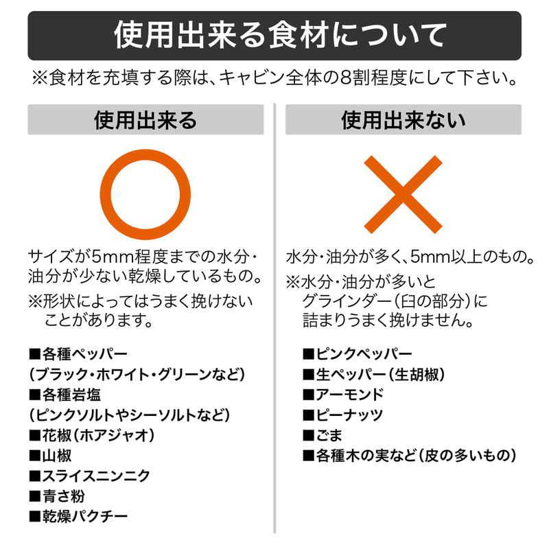粒度の粗さ調節ができるので、お料理を引き立てる最適な粒度をチョイスできます。