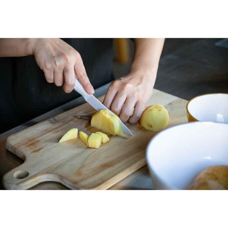 硬度が高く丈夫な素材を使った、ステンレス製のペティナイフです。