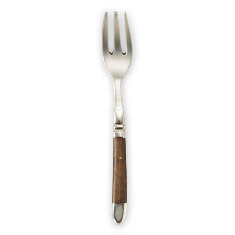 柄が木になっている、オーソドックスなデザインの真鍮製のフォークです。