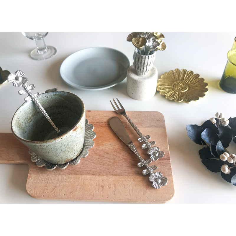 キーストーン バターナイフ 14cm ブラスカトラリー フラワー ポピー ブラス シルバー