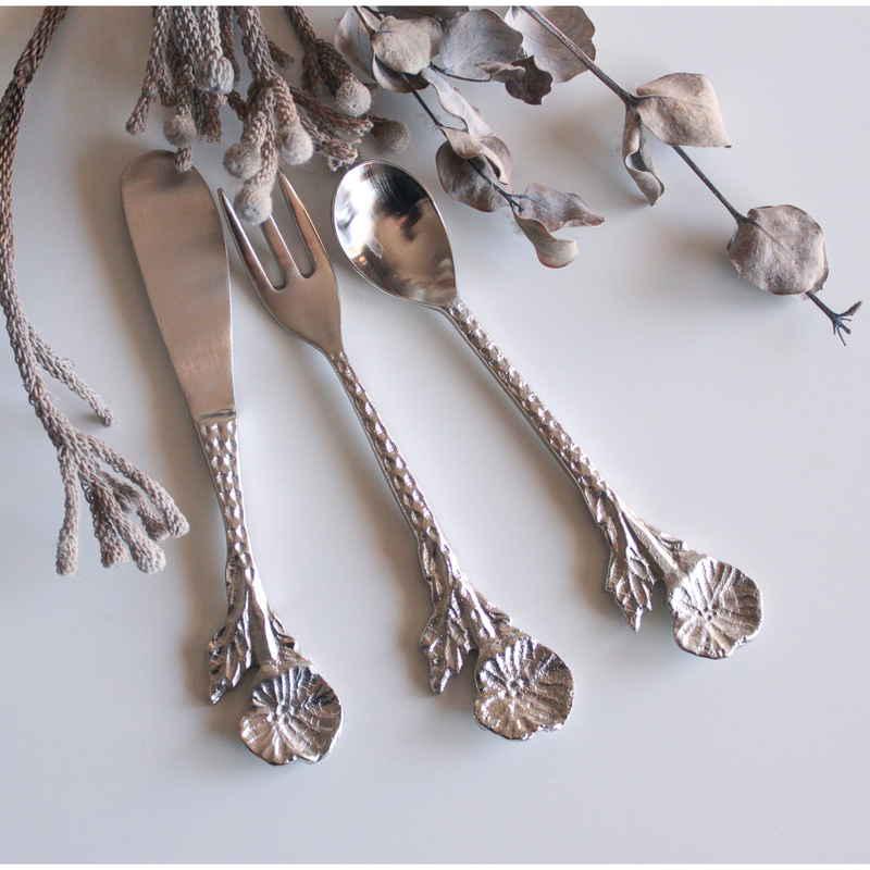 キーストーン ティースプーン 14cm ブラスカトラリー フラワー ポピー ブラス シルバー
