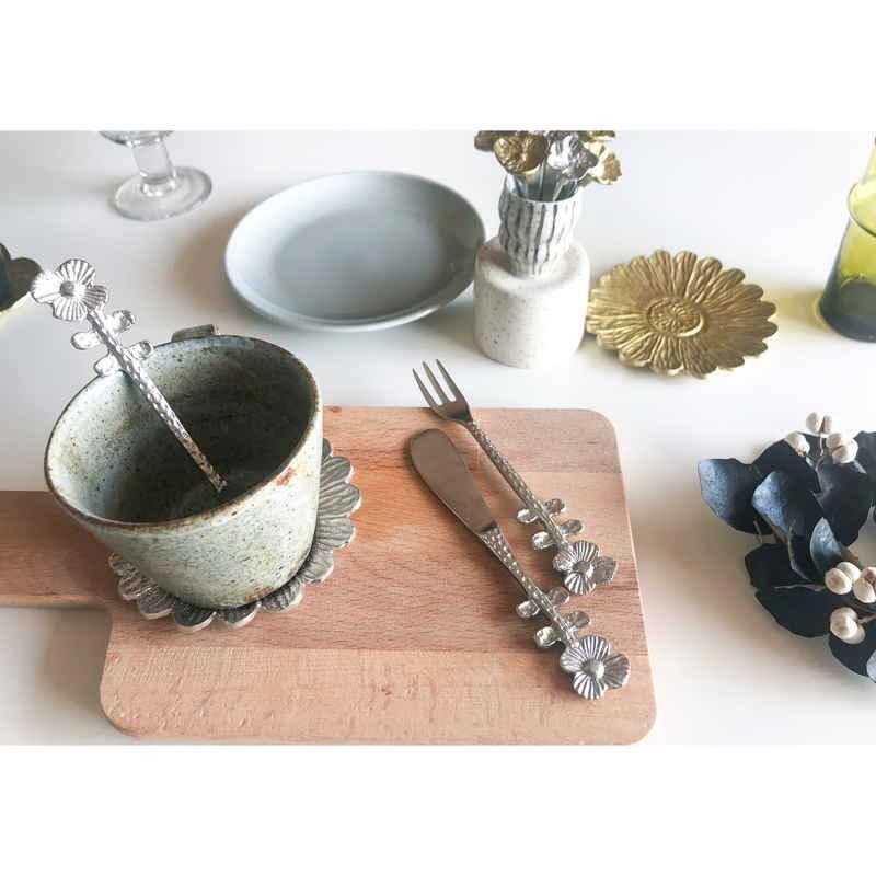 ポピーをモチーフにしたブラス製のティースプーンです。