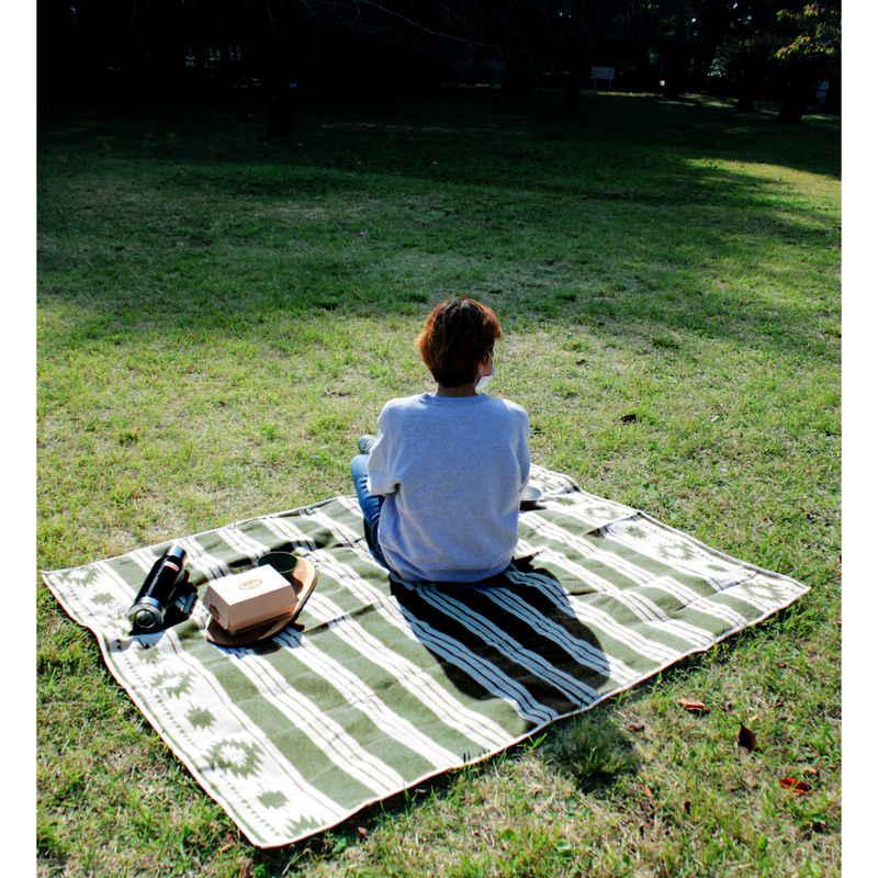 キーストーン ピクニックシート ボーダー 136×180cm コットン カーキ